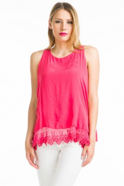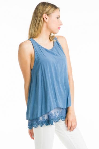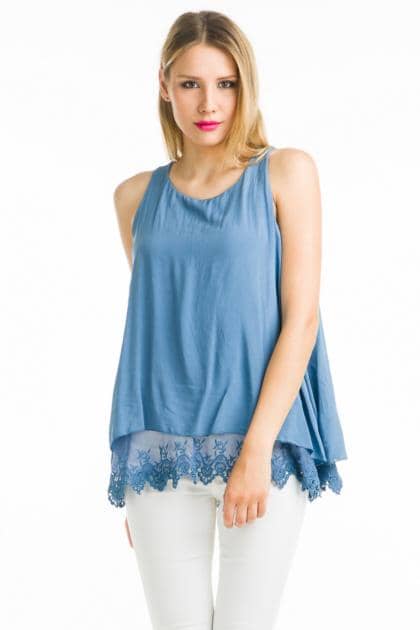 Tank top, with double ruffle trim with lace Macram. On the back keyhole with button.