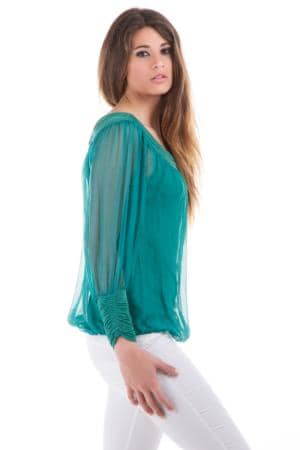 Tunic with pretty pleats, long sleeves with elastic cuffs. The ease 'with which you are wearing make it very comfortable.