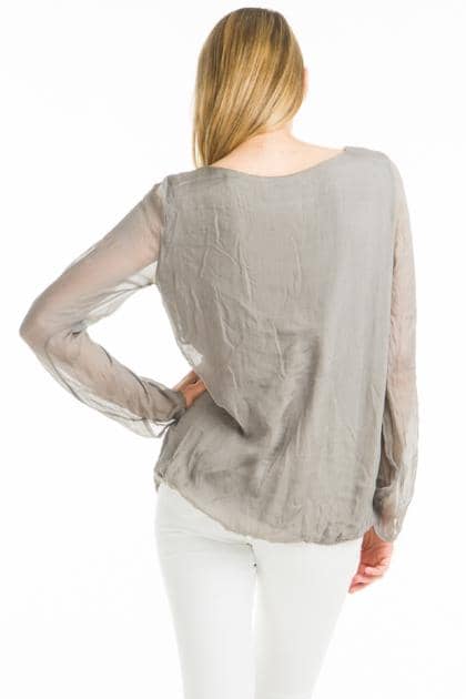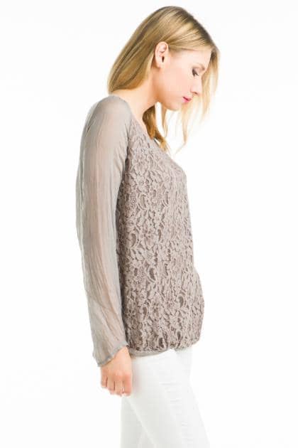 Blouse with lace front, in wide silk sleeves. Viscose lining.
